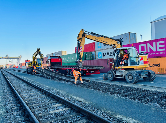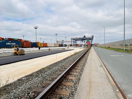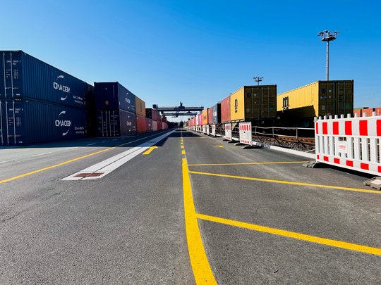 Zwei bisherige Abstellgleise werden bei uns zu Umschlaggleisen umgerüstet. Außerdem wird es im Modul 1+ drei neue leistungsfähigere Krananlagen geben.